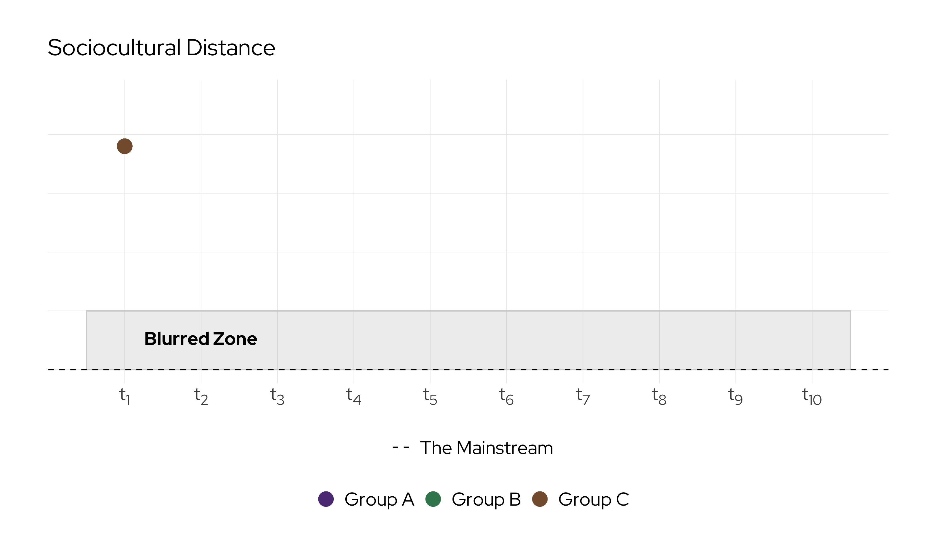 A blurred boundary, by contrast, means that individuals are seen as simultaneously members of the groups on both sides of the boundary or that sometimes they appear to be members of one and at other times members of the other. Under these circumstances, assimilation may be eased insofar as the individuals undergoing it do not sense a rupture between participation in mainstream institutions and familiar social and cultural practices and identities.